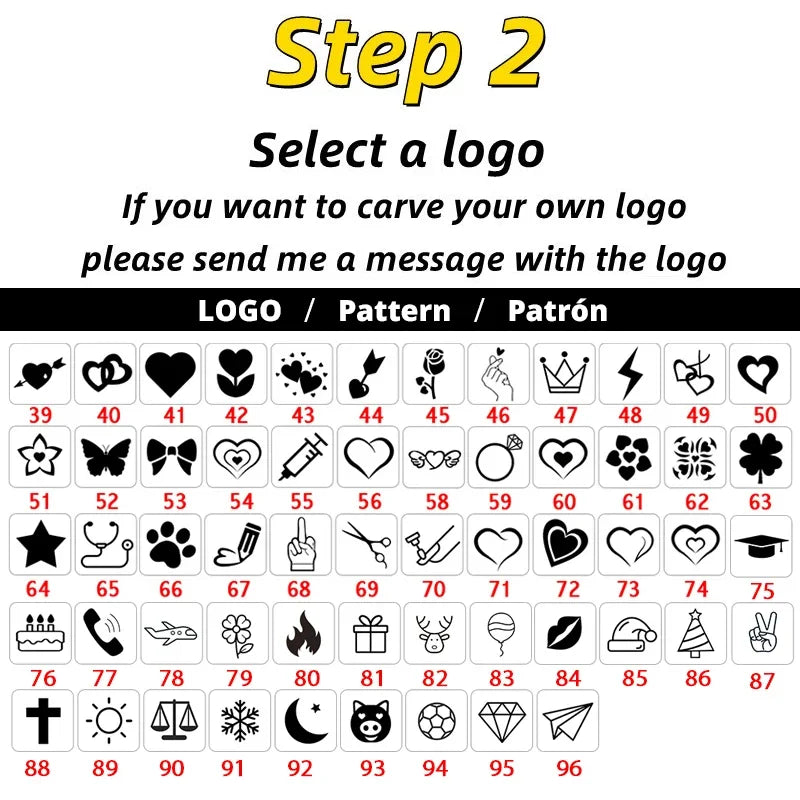 the "font and pattern" shown in the following pictures are engraved for FREE and included in your purchase.