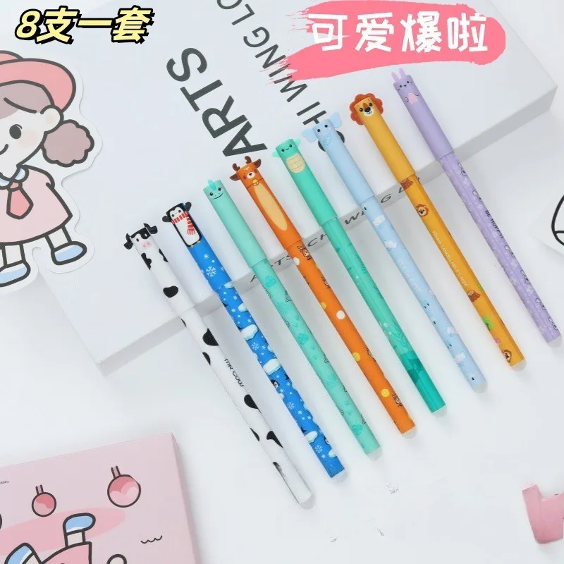 4/8pcs Colors Erasable Gel Pens with Erase Ink Cute Animal Pen Colours 0.6mm Tip Fine Ballpoint Pens for School Office Gift