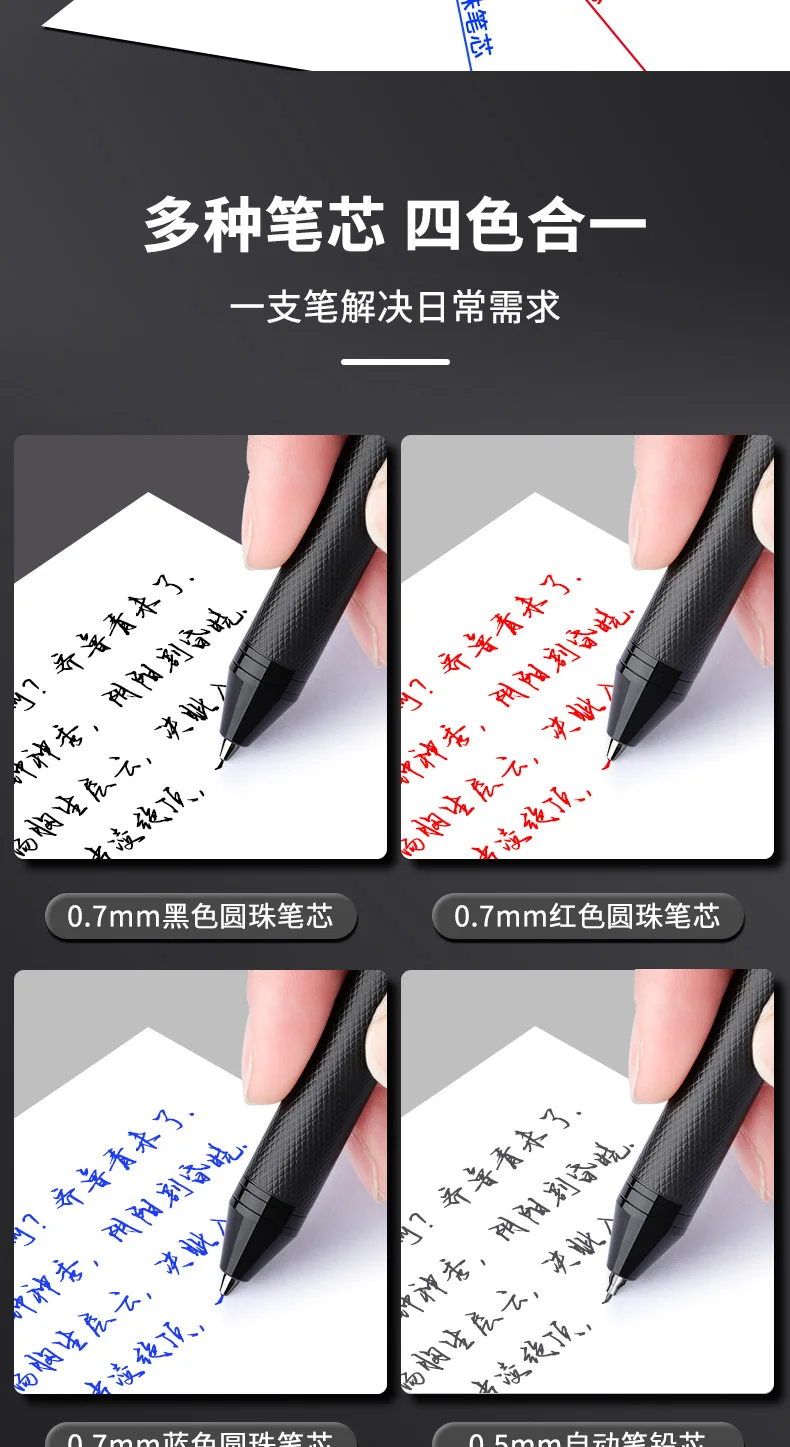 ❤ Four color pens - 3 ballpoint pens (0.7mm) in black, red, and blue, and 1 mechanical pencil (0.5mm), multicolor pen in one premium -mechanical pencils and pen combo.