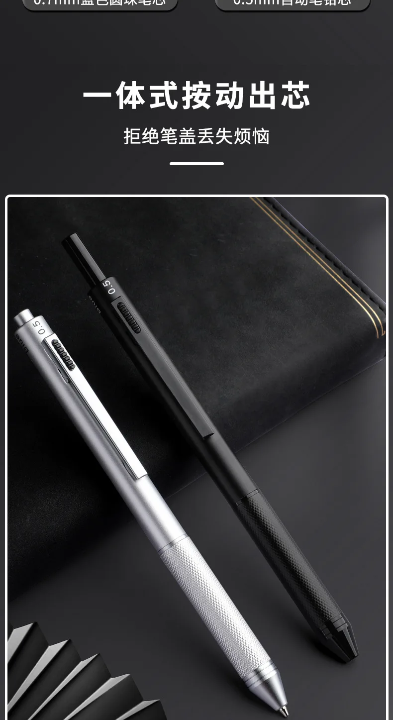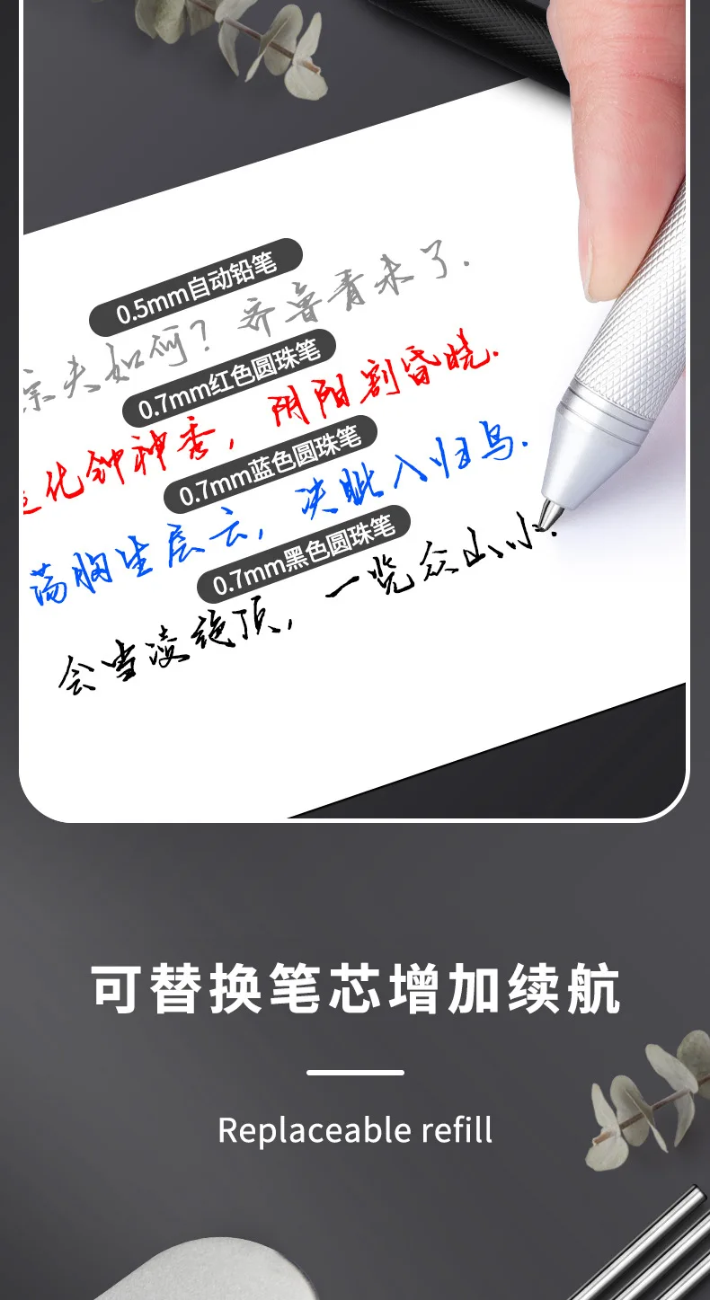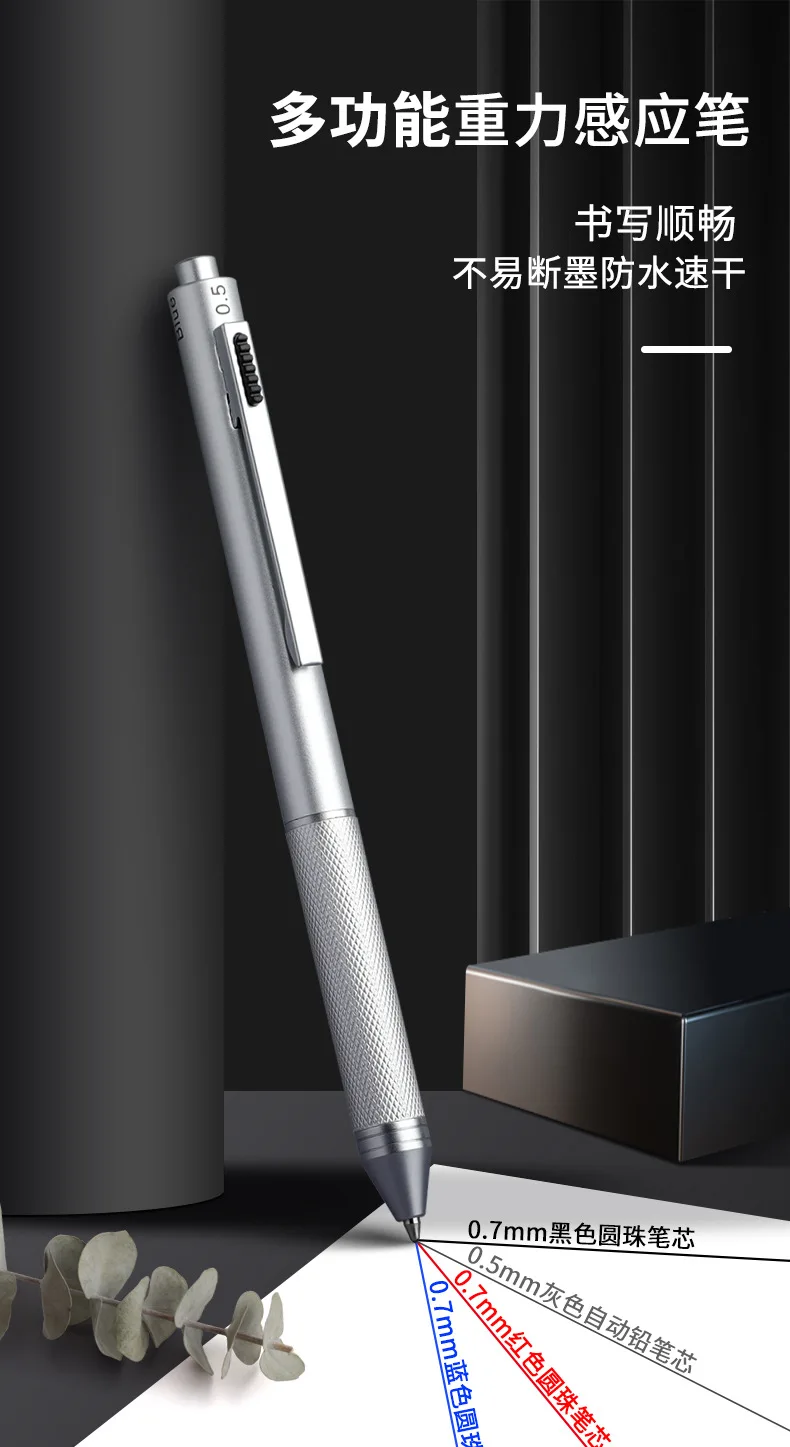 4 In 1 Multifunction Luxury Pen, 0.7mm 3 Color Ballpoint 0.5mm Mechanical Pencil, Gravity Sensor Metal Retractable Pens Długopis