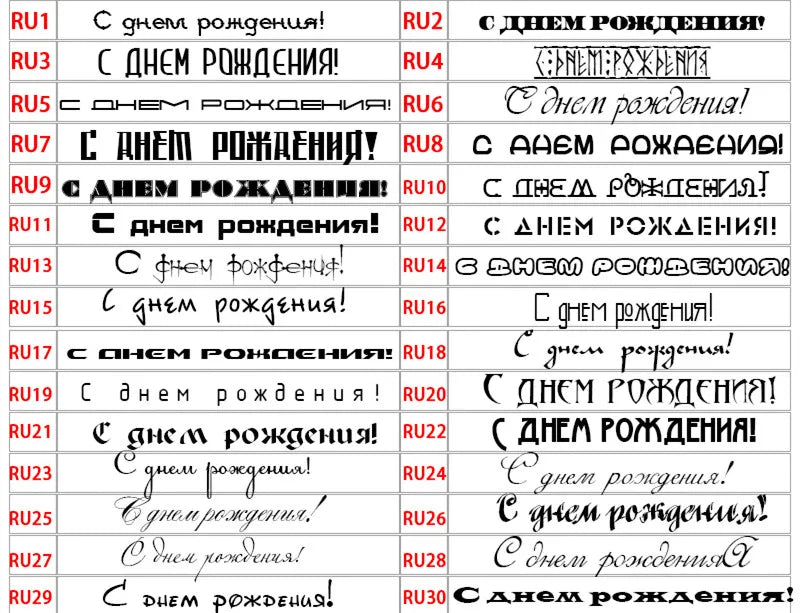 RU1-RU30 fonts are supported for Russian only