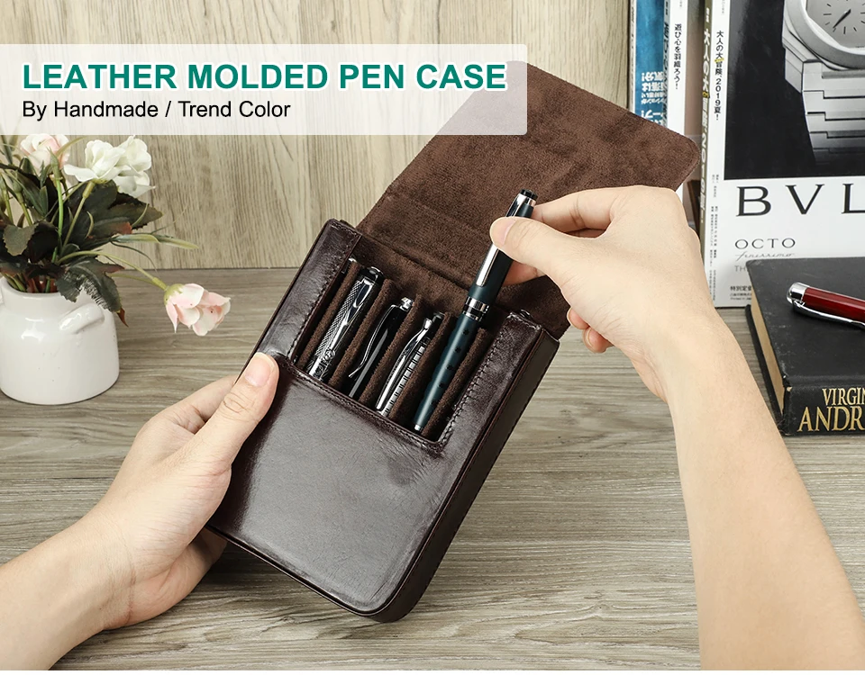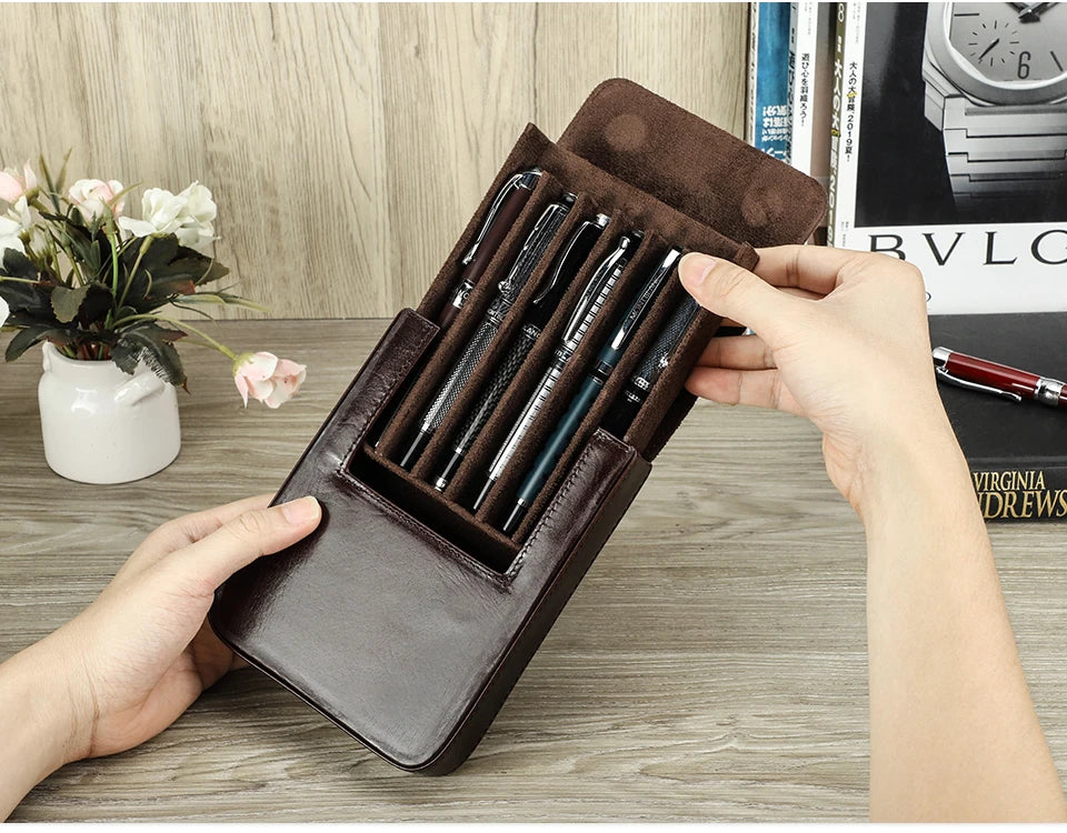 CONTACTS FAMILY 6 Pen Case Genuine Leather Detachable Portable Stationery Cover Holder Handmade Pen Box Shockproof Men