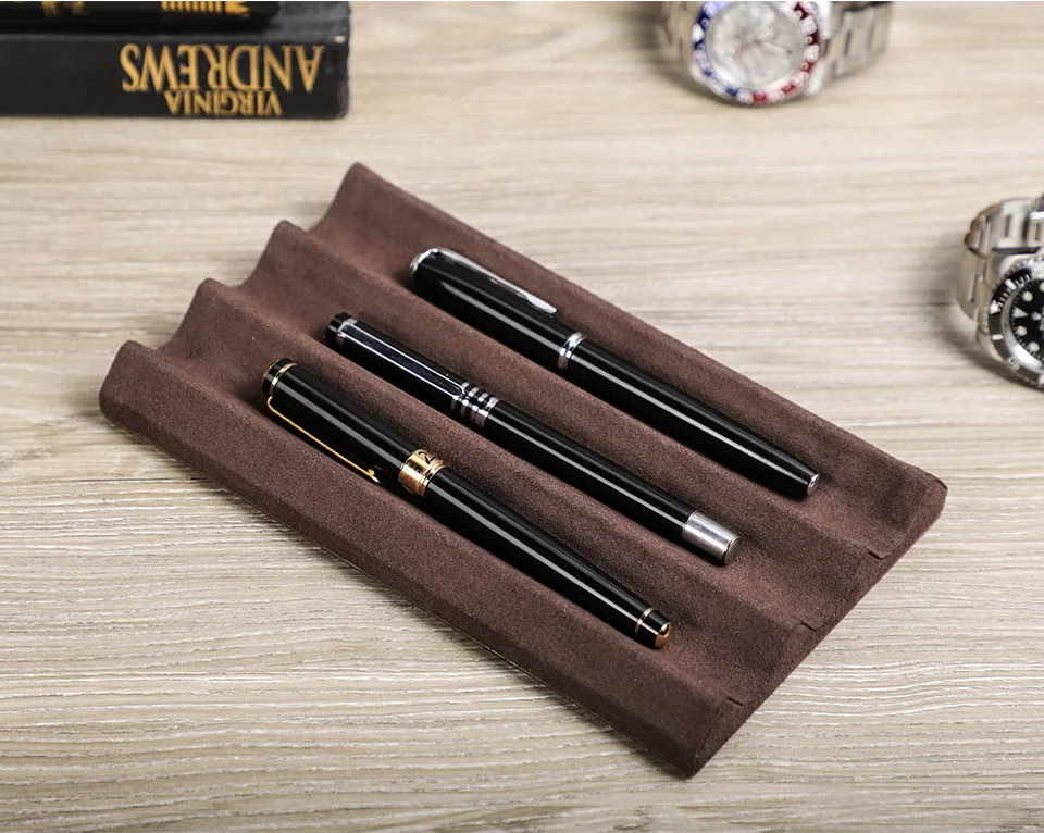 Luxury Microfiber velvet Pen Tray 2/3 Slots Pens Holder Display Stand Desktop Organizer Home Office Use