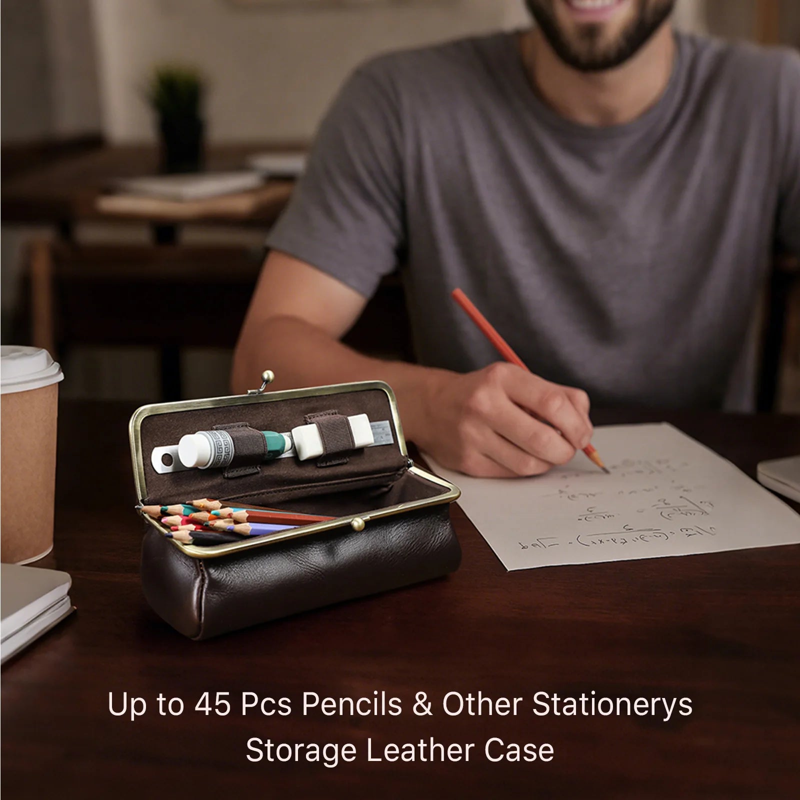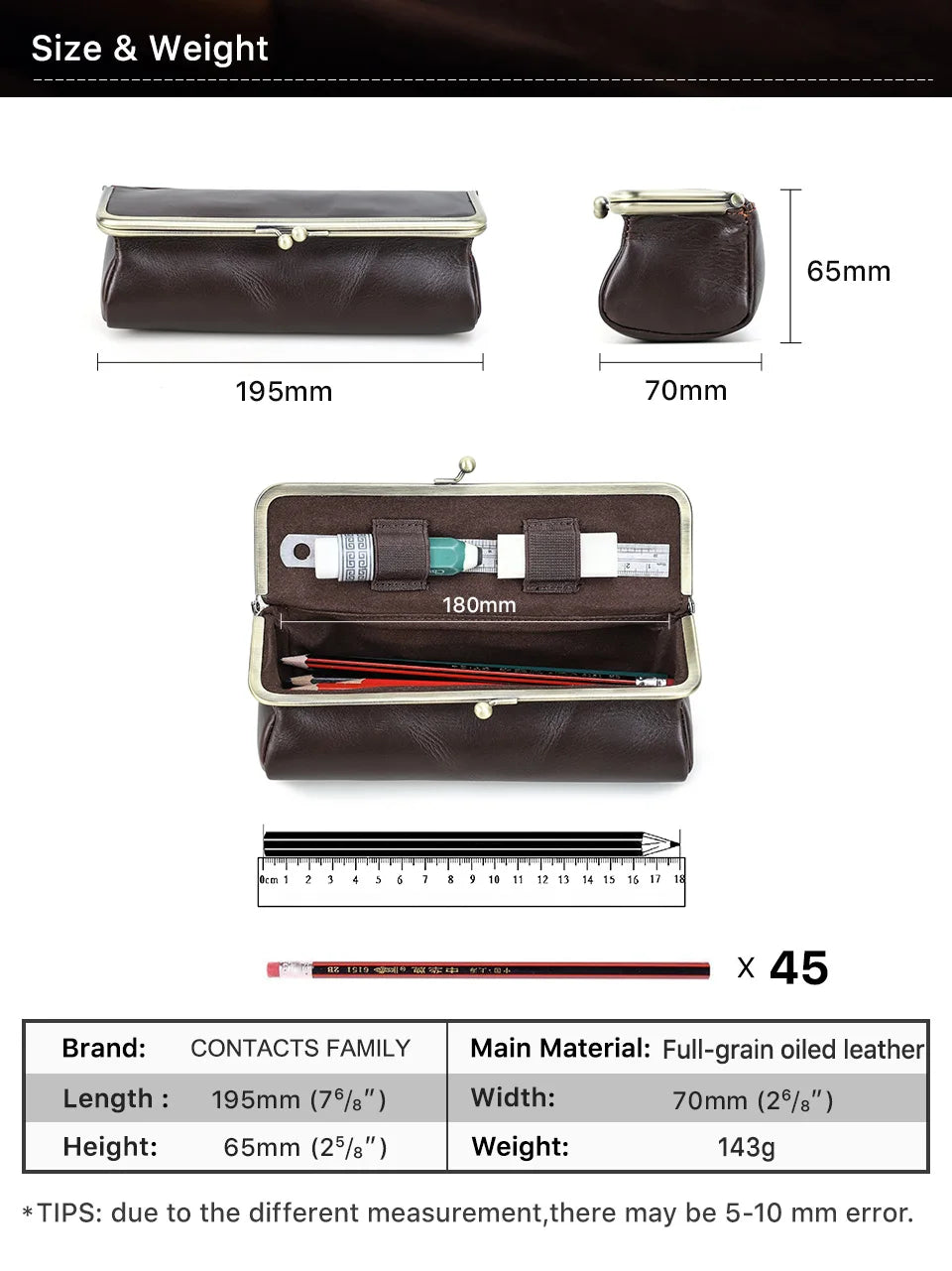 Leather Pen Pouch Vintage Genuine Full Grain Oil Bead Leather Pen Case Retro Stationery Holder Organizer for Office School Best Gift