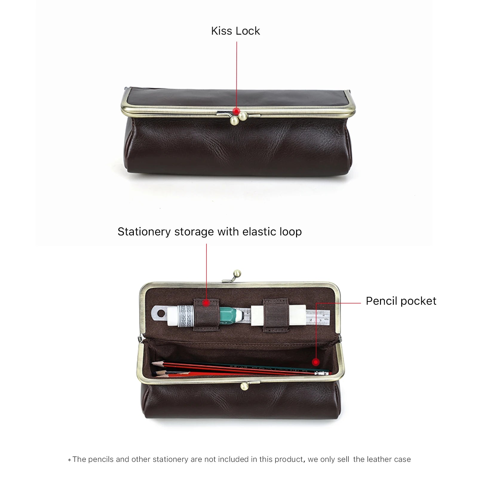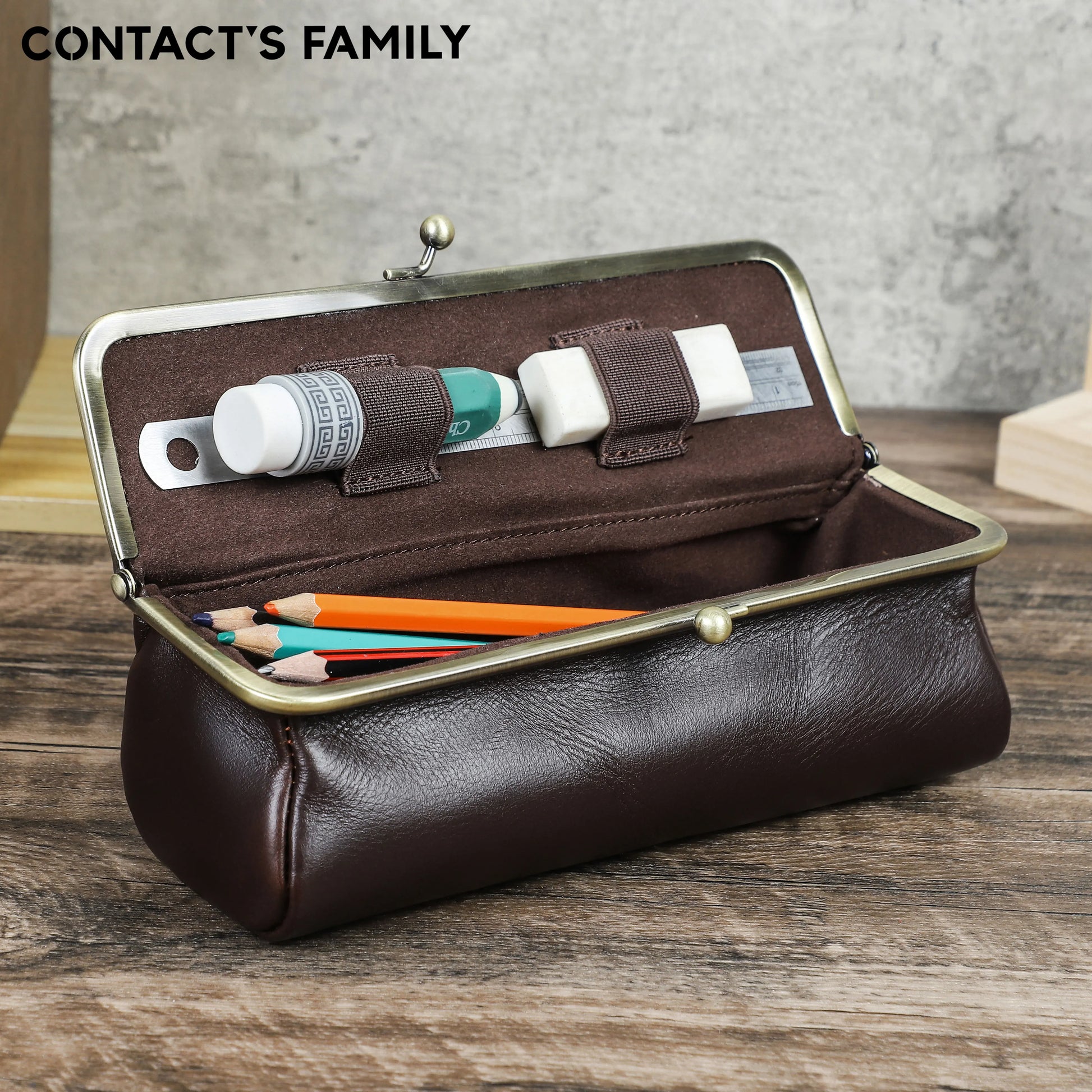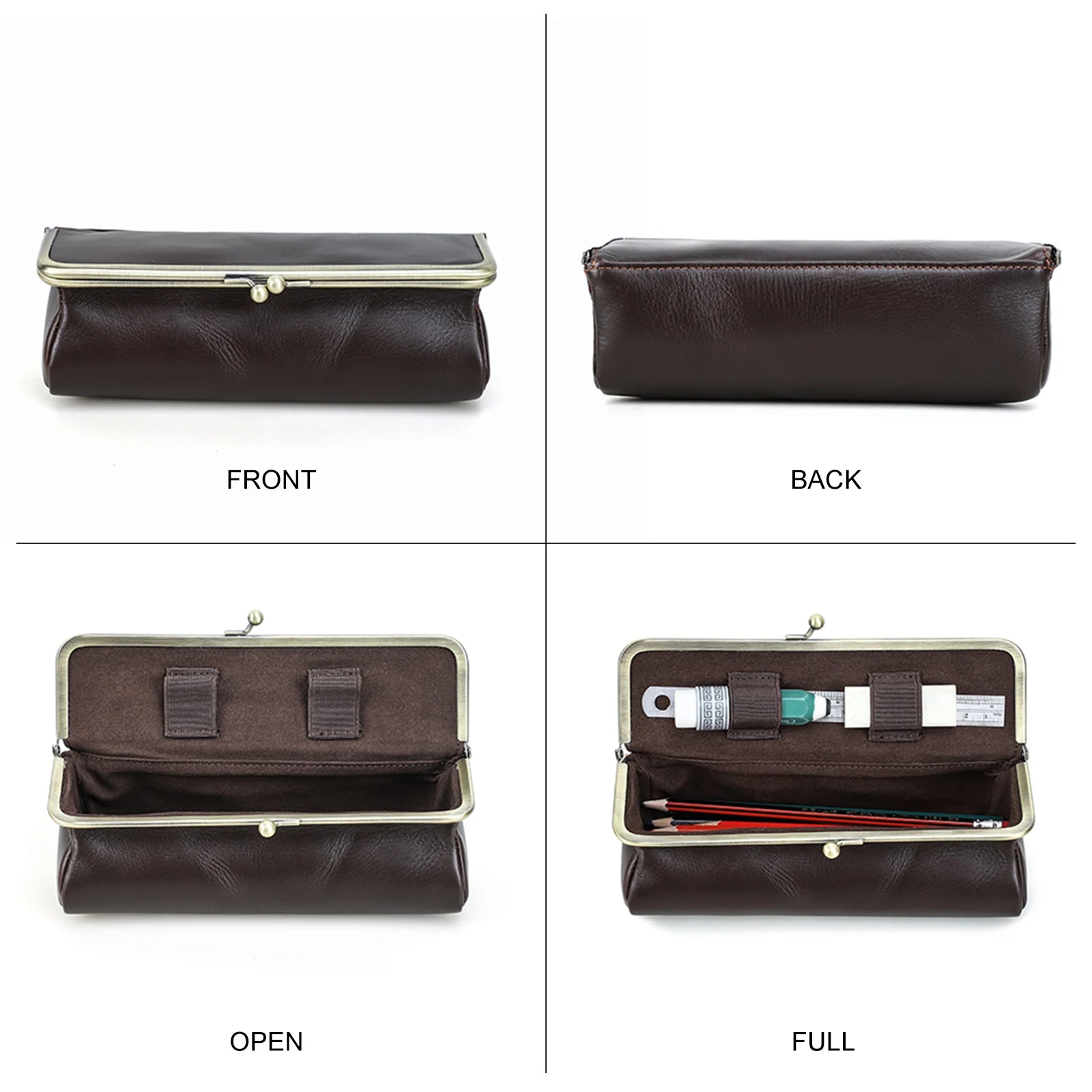 Handmade Vintage Genuine Leather Pencil Case Retro Storage Box for Office School Supplies Best Gift