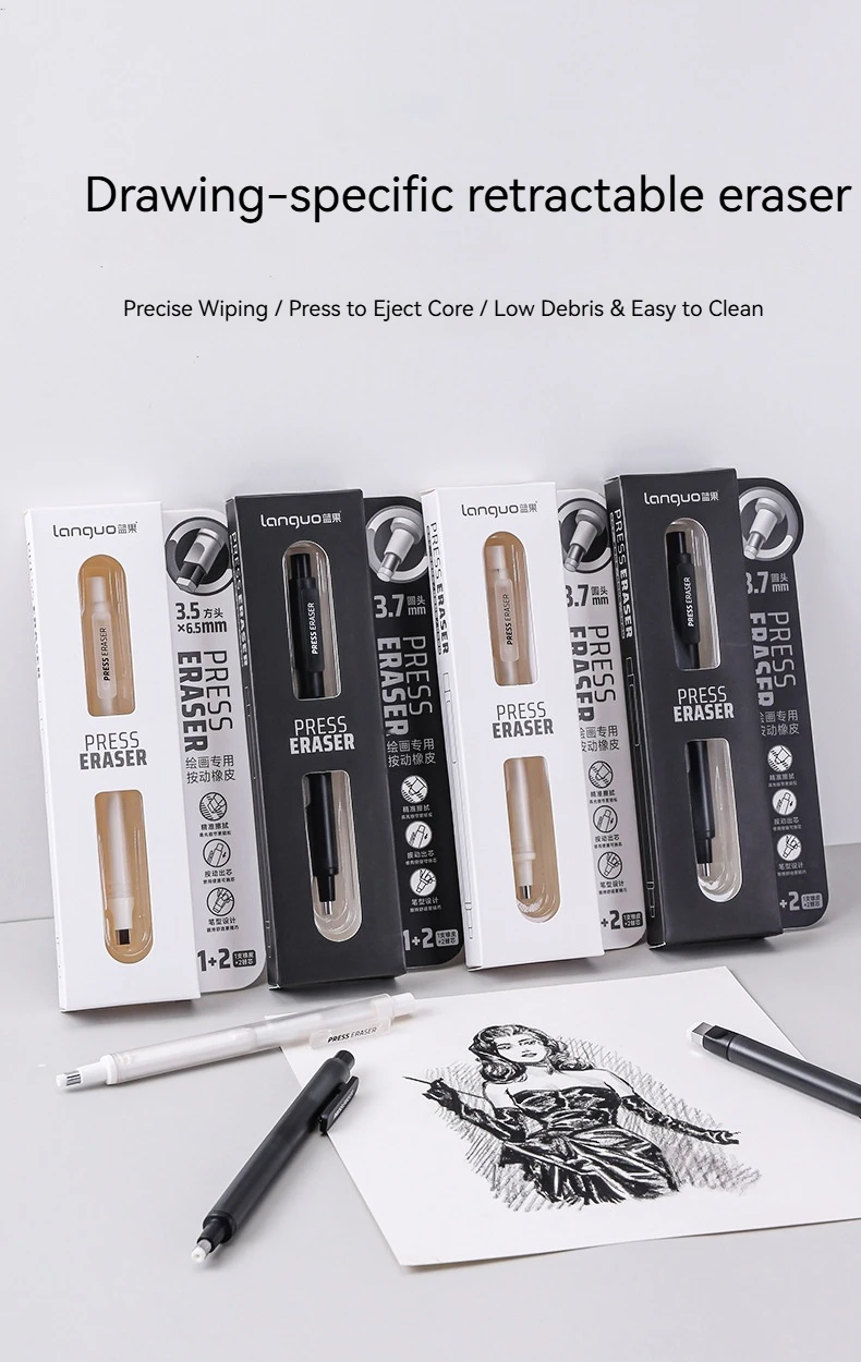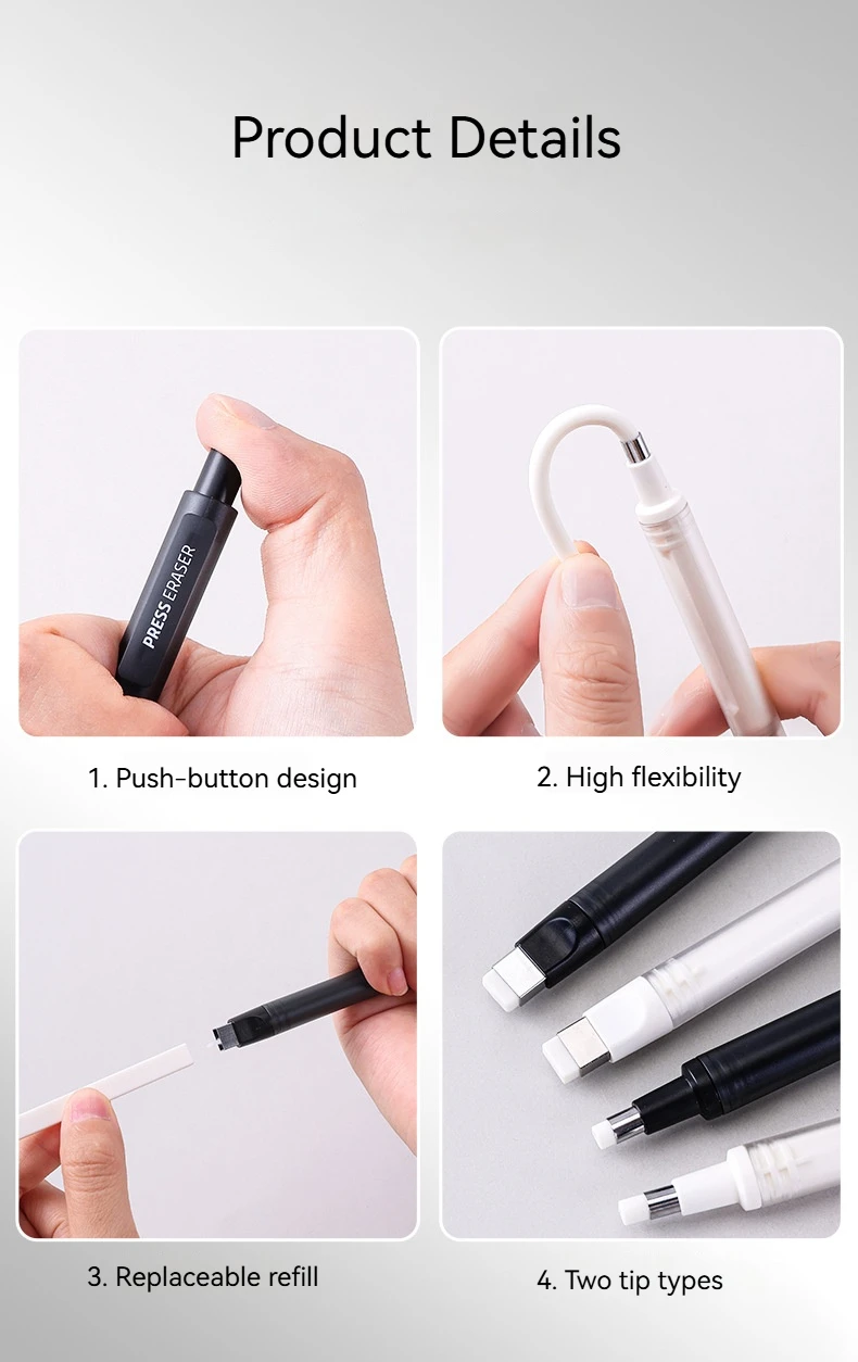 Push-Type Pencil Eraser For Manga Design Drawing Highlight Modeling Writing Painting Press Erasers Kids School Stationery Gifts
